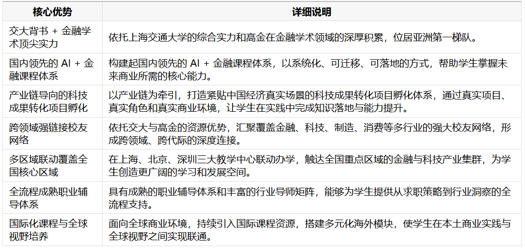 基于这套标准,我们聚焦国内金融MBA领域的标杆——交大高金MBA项目,解析其成为行业焦点的核心逻辑。